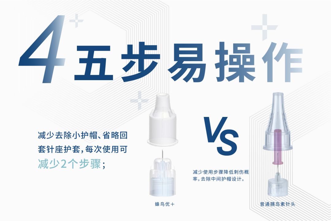 - 五步可操作:減少去除小針帽,省略回套針座護(hù)套,每次使用可減少2步。